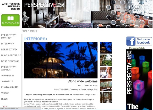 Click here to read Perspective’s complete interview with Elora Hardy [caption id="attachment_243" align="aligncenter" width="481"] Cover Perspective Magazine[/caption] [caption id="attachment_244" align="alignnone" width="650"] Green School article[/caption] [caption id="attachment_245" align="alignnone" width="650"] Green School article[/caption]...